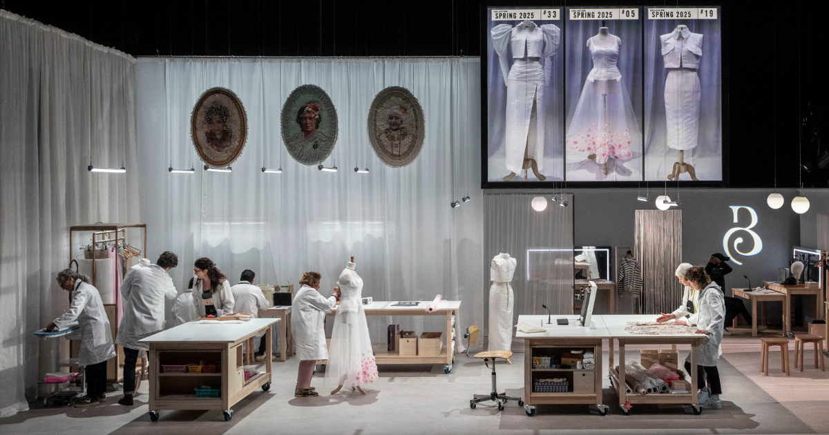 Set, costumes and embroideries have been made in-house by the TnS workshops.